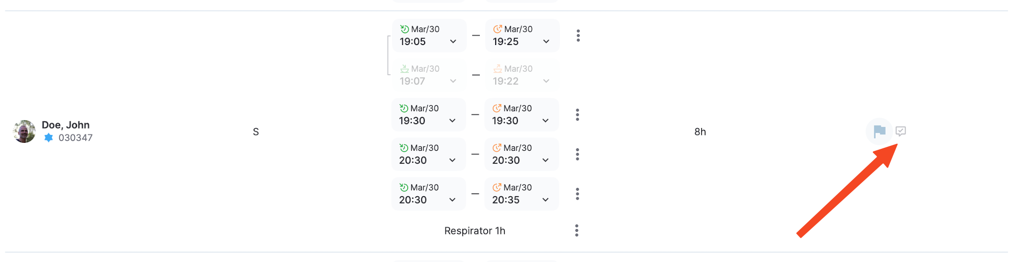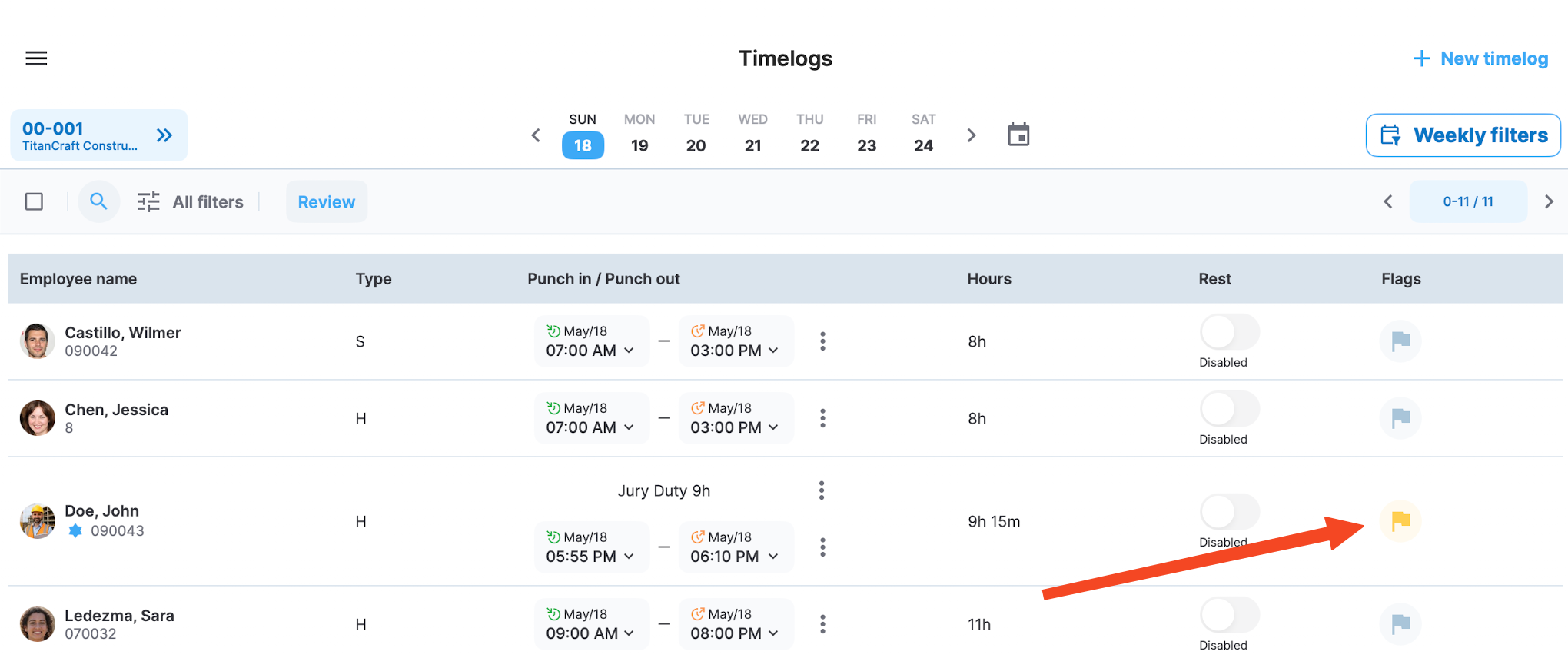 Here, you see all the flags, if any, that have been applied to the timelog with the option to resolve them.