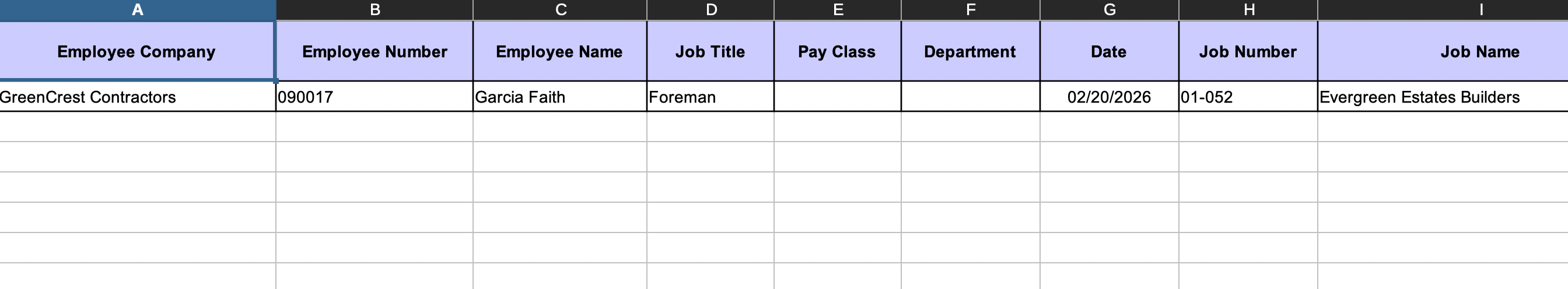 - Job Site. The name of the job site where the employee has worked.