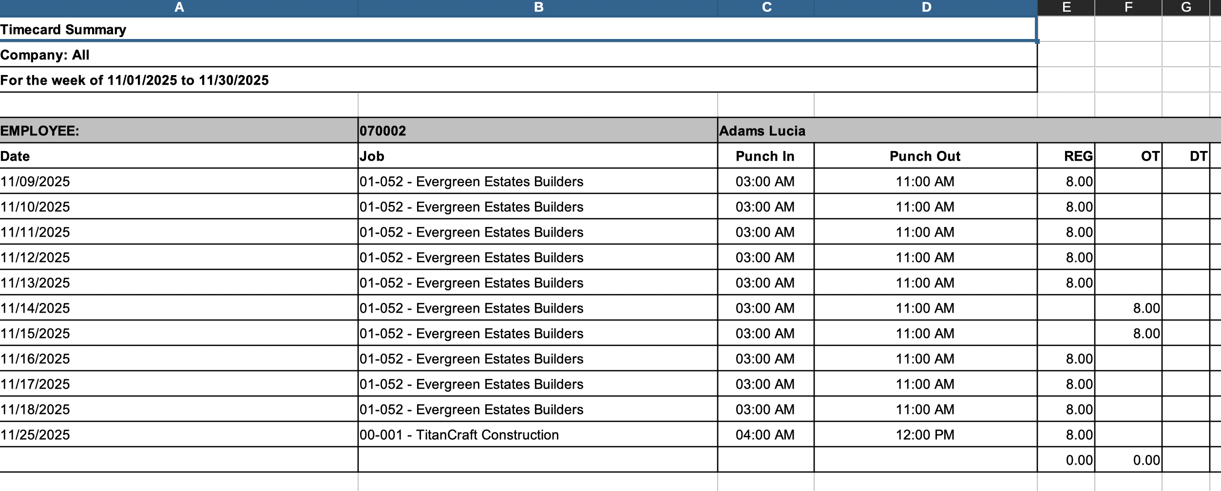 Timecard Summary report example
