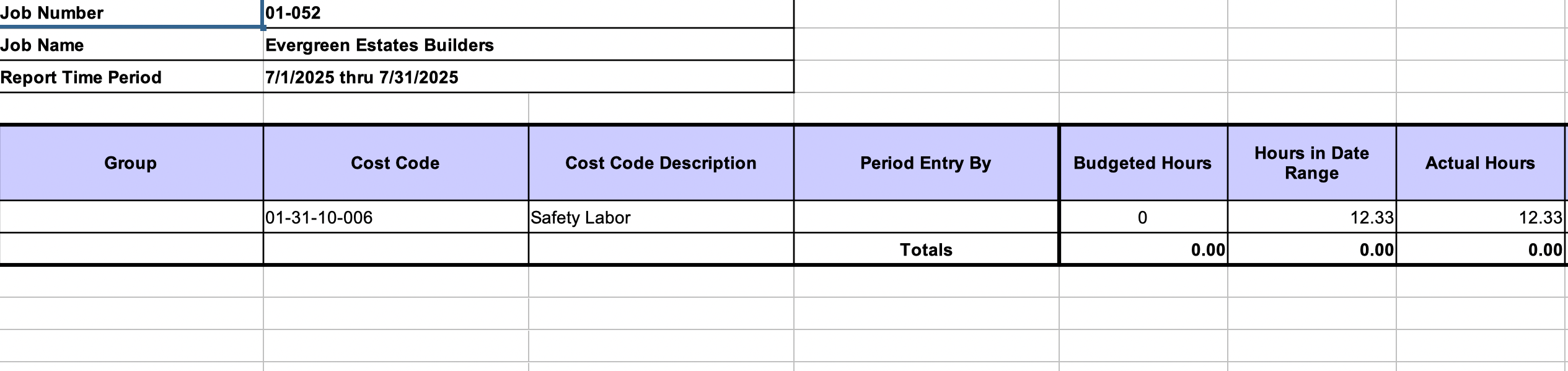 - Hrs. The total hours worked on this cost code across all employees during the date range.