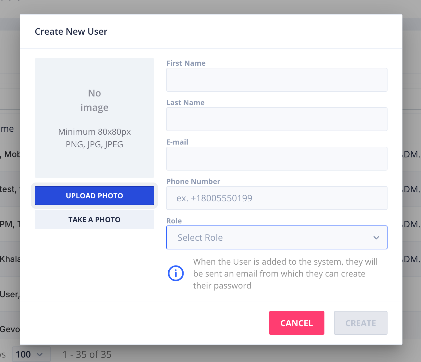 Using the CREATE NEW USER button, you can fill in user details and create a new profile.