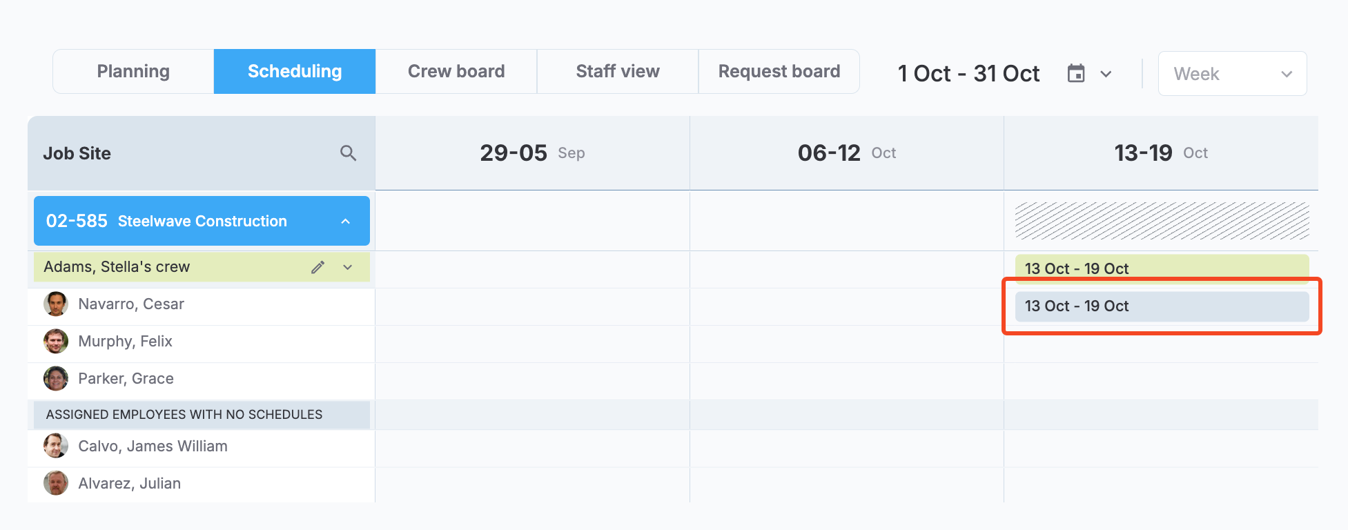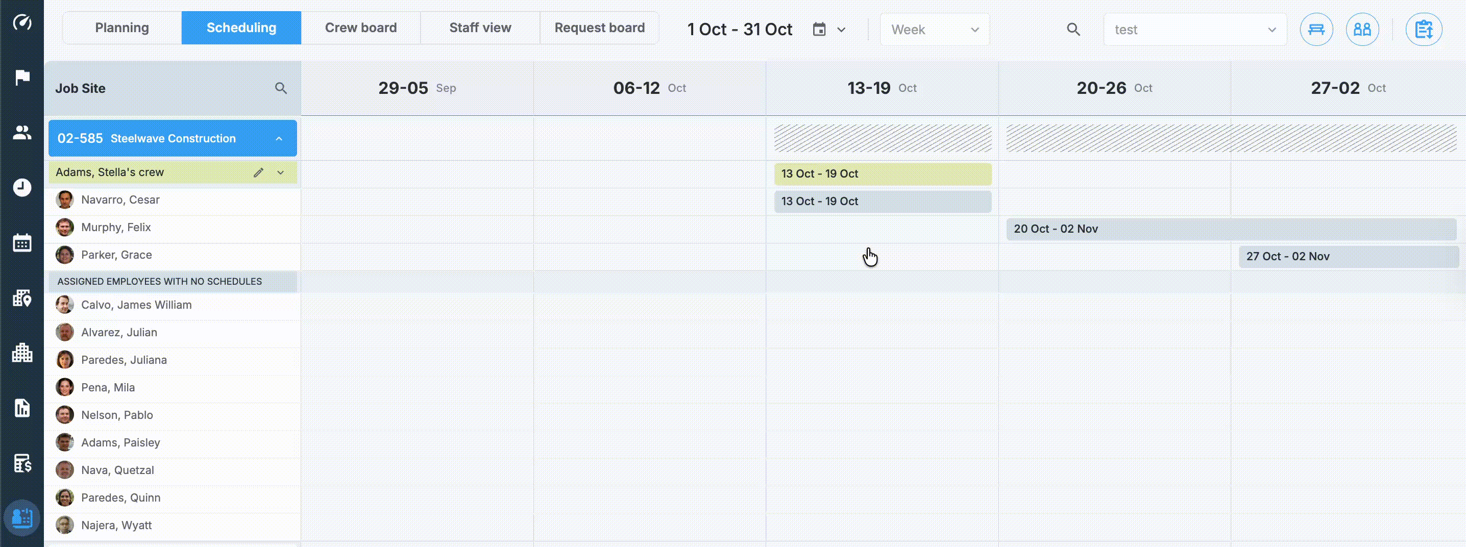 In this topic, you'll learn how to view, edit, and delete schedules. The first part of the topic is dedicated to individual employee schedules, while the second part is dedicated to crew schedules.